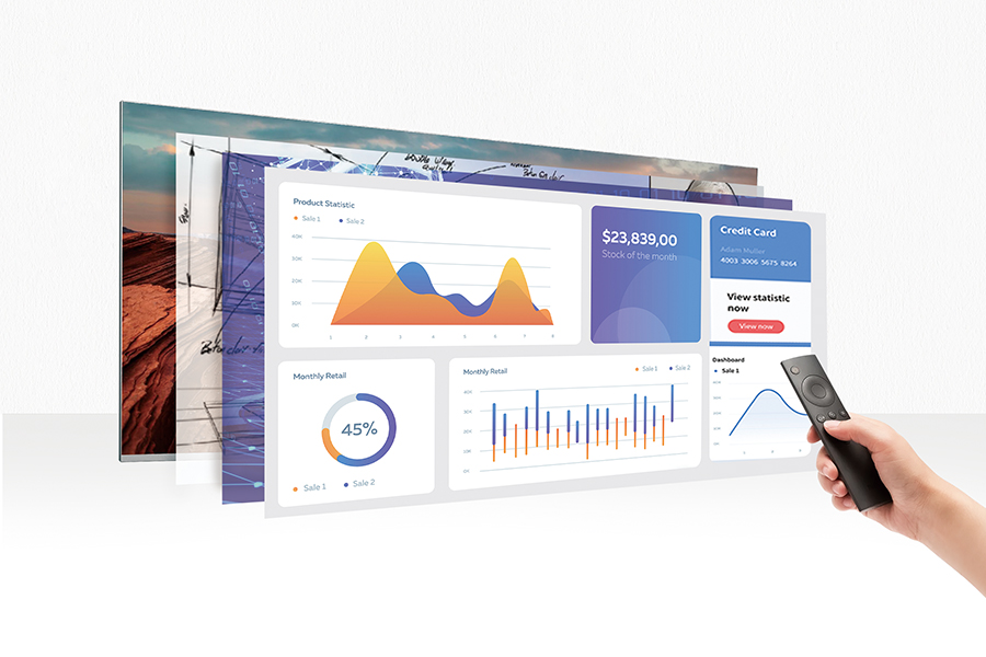 ⑤ 至真畫質,還原視界本真:Absenicon C系列寬屏帶來無與倫比的顯示色彩和對比度,更加準確地還原企業logo,品牌標識和配色方案。具有600nits高亮度,確保內容在任何環境下都清晰可見,無需調暗室內燈光。