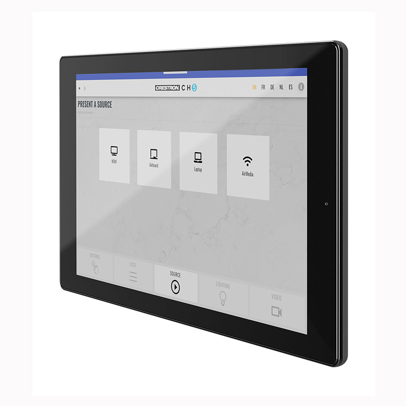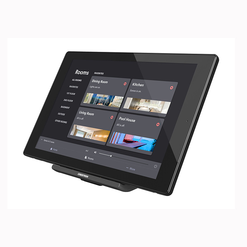 快思聰 TST-1080 無(wú)線觸摸屏,能夠?qū)崿F(xiàn)許多以前無(wú)法實(shí)現(xiàn)的功能。它不僅適用于商業(yè)環(huán)境,如會(huì)議室,也能完美融入住宅空間,例如家庭影院。屏幕上精心設(shè)計(jì)了一個(gè)通用狀態(tài)欄,預(yù)裝了多種虛擬按鈕,以執(zhí)行日常最常用的操作,包括開(kāi)關(guān)設(shè)備、調(diào)節(jié)燈光亮度、快速返回主頁(yè)等。該解決方案由Crestron HTML5用戶界面和Crestron Construct?軟件的全面支持,用戶可以輕松定制屏幕,以適應(yīng)用戶任一功能的需求。
